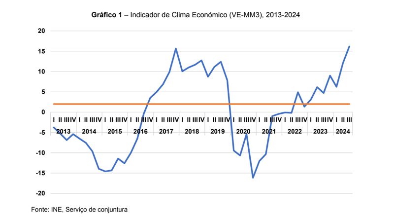 “O indicador situa-se acima da média da série, tendo atingido um valor muito superior relativamente ao mesmo período do ano 2023, revelando que a conjuntura económica é favorável”, lê-se no relatório divulgado.