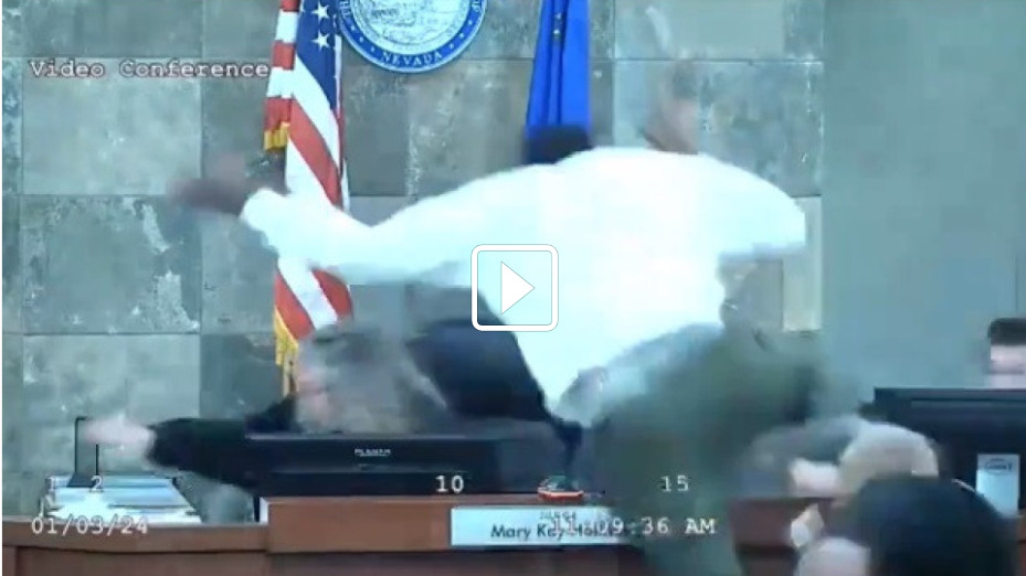 Nas imagens que registaram o momento, e que pode ver acima, pode ver-se o réu a atirar-se à juíza, que cai no chão. Outras pessoas tentam intervir, tentando separar o suspeito e a juíza.